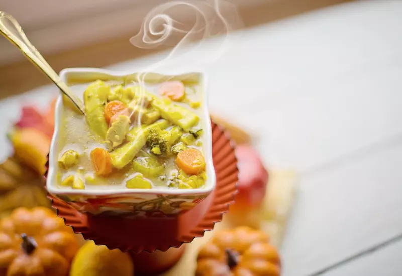 Nezapomínejme ani na potraviny, které nás zahřejí, jako jsou kořenová zelenina (mrkev, celer, petržel), batáty a dýně, nebo některé koření (skořice). Vhod vám přijde například dýňová polévka s restovanými houbami a tymiánovým jogurtem.
